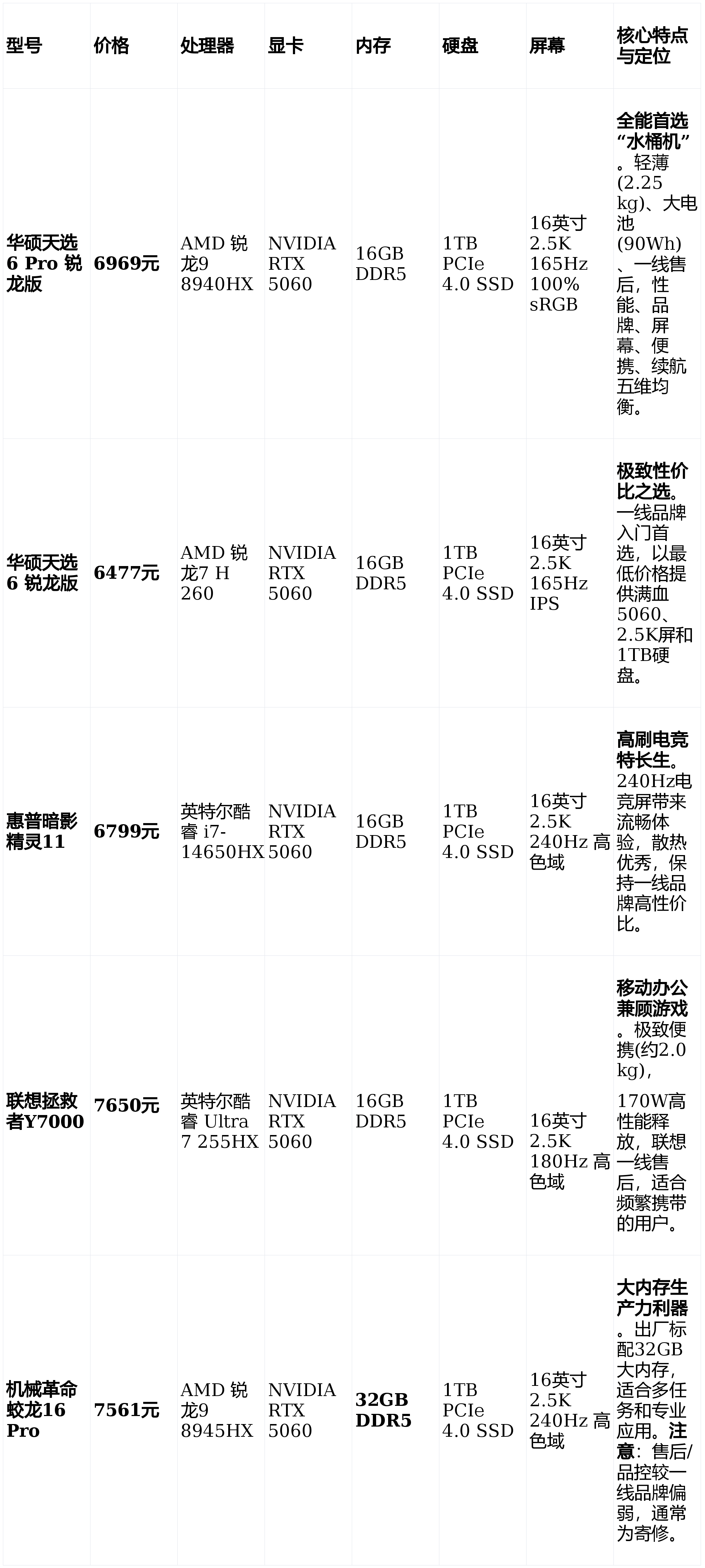 1。 闭眼入的万能首选:华硕天选6 Pro 锐龙版。适合不晓得本人具体需求、逃求全面平衡体验的绝大大都用户。2。 极致预算的一线 锐龙版。适合预算严酷节制正在6500元摆布,4。 挪动办公+逛戏兼顾:联想者Y7000。适合经常需要照顾笔记本外出,对便携性要求极高的用户。5。 大内存刚需用户:机械蛟龙16 Pro。适合视频剪辑、编程、大型设想等需要大内存的专业用户,前提是能接管非一线的售后办事模式。市场结论:7000元价位合作白热化,华硕天选系列凭仗精准的产物定位(天选6从打性价比,天选6 Pro从打万能)成功领跑。是7000元价位最值得向他人保举的“闭眼入”选择。前往搜狐,查看更多?。